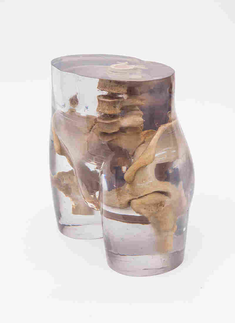 骨骼封装在透明组织等效材料中。也可以封装在不透明的材料来隐藏内部结构。所有的模体都是手工制作的,它们的大小和形状取决于骨头等原材料,每个都有不同。