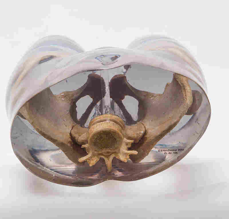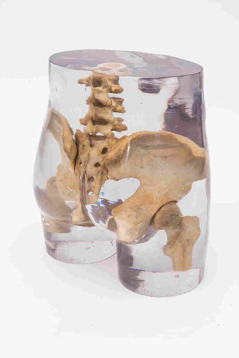 Phantom features pelvis, 2 lumbar vertebrae and thigh part (transparent / opaque)